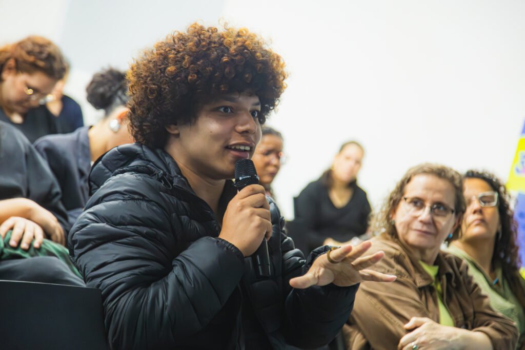 O público conferiu trechos dos curtas-metragens Travessia (2017), Nascente (2020), Alágbedé (2021), Da Pele Prata (2025) e no longa-metragem Cais (2025). “Quando penso nesse cinema como nascente é pensar na abundância de histórias que a gente tem para contar, da força, da beleza desse movimento gerado por essa água que brota da terra e que mina. É encontrar a fonte dessa inspiração e entender que é para ela também que estou fazendo isso. É sempre importante esses espaços onde eu troco com as pessoas, porque acho que disso surge muita coisa, para mim e para o outro que está ali também nessa troca.”
